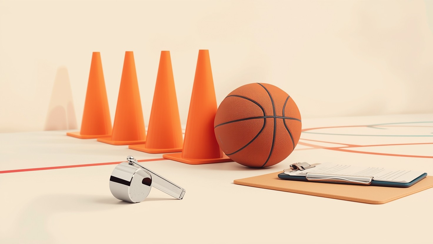 Poly spots keep them spaced for safety standards and emergency preparedness. I drill S.T.E.P.: Square to basket, Triple threat, Extend arm, Pop those knees.